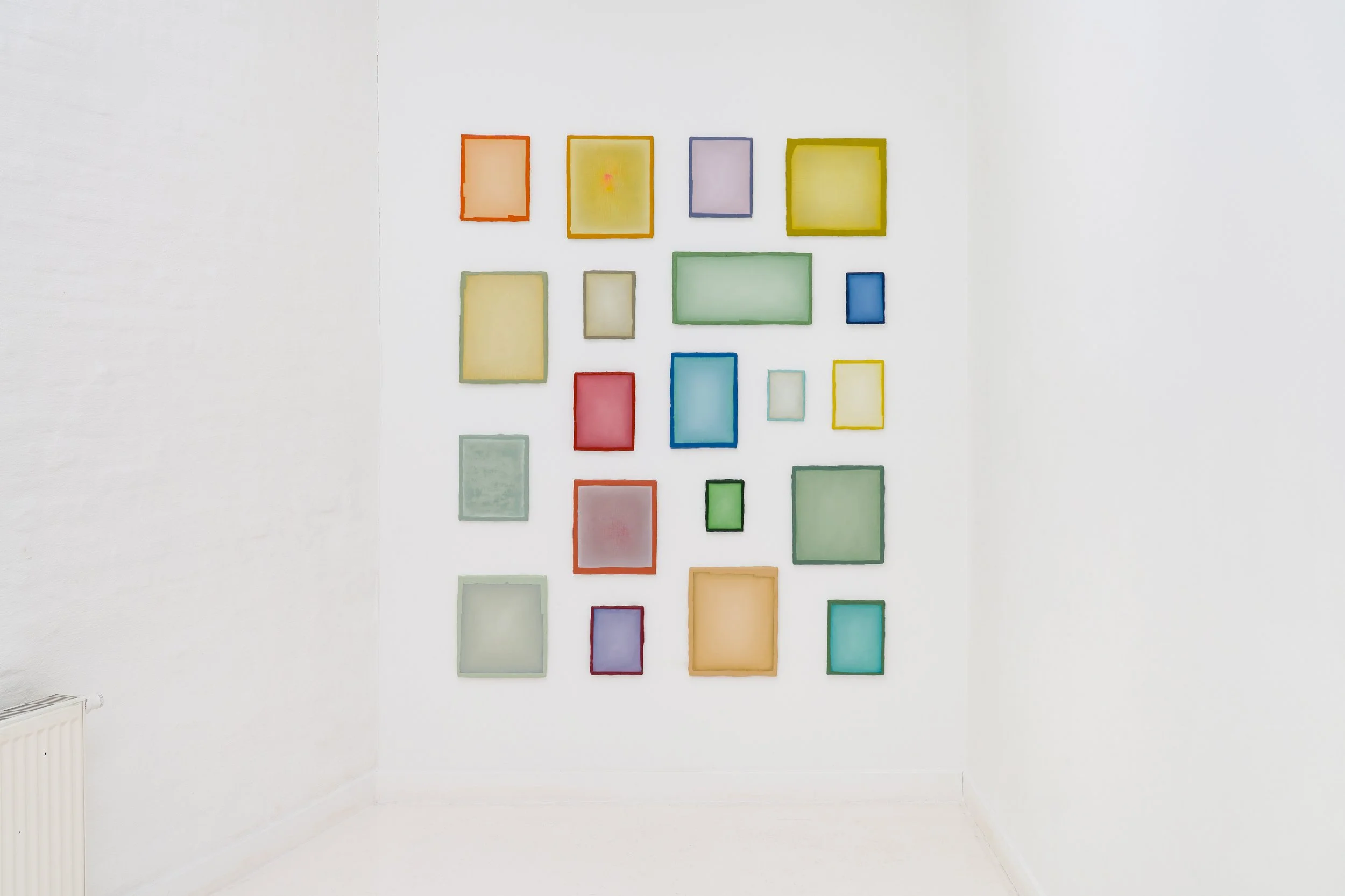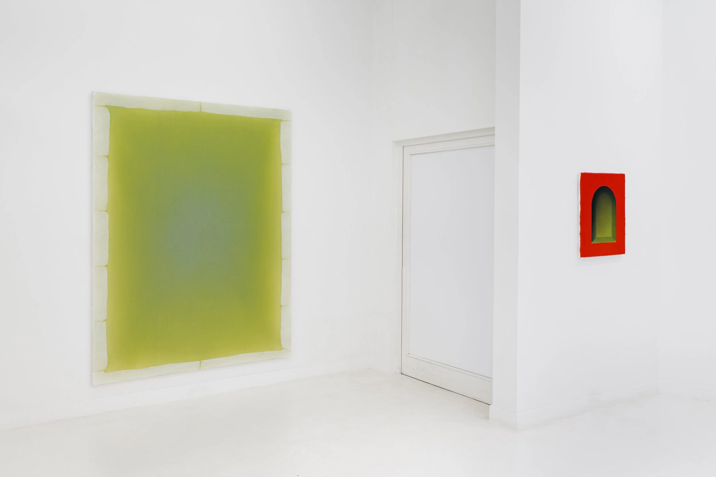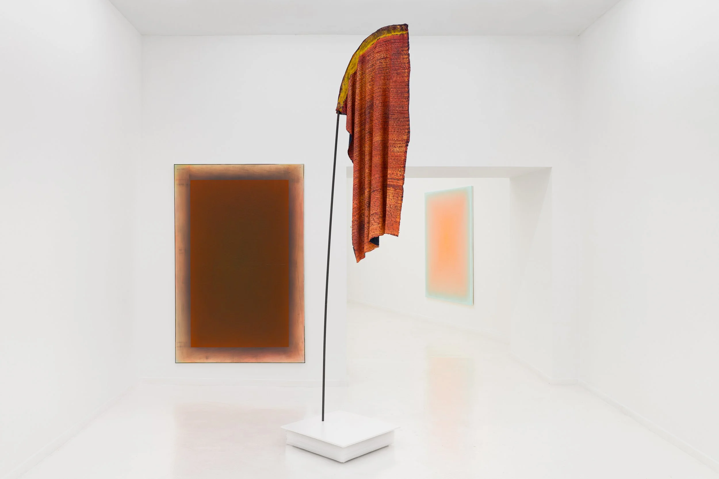 HIDE carries a double meaning, both of which are important characteristics of his work. On the one hand, it refers to hiding; a deeply personal sentiment that regularly manifests itself in his paintings, sometimes in paradoxical ways. His works often function as a mental or physical dam, a shield, a defensive wall between himself and the outside world. The paintings become mental windows through which he can escape in thought, mental landscapes where his thoughts can dwell undisturbed, mental objects behind which he can spiritually conceal himself. At the same time, a paradox is present: as much as the paintings want to stand out and be seen, for instance when monochromes are presented in atypical spaces, hanging in the open air or in a ruin, pushing the contrast between the work and its environment to the extreme, there is an equally strong desire to be absorbed by them and disappear into them. The work seeks to reveal and conceal at the same time. A second meaning that can be derived from HIDE is that of skin, the skin of paint, which is likewise an essential element of his painterly research, in both two and three dimensions.